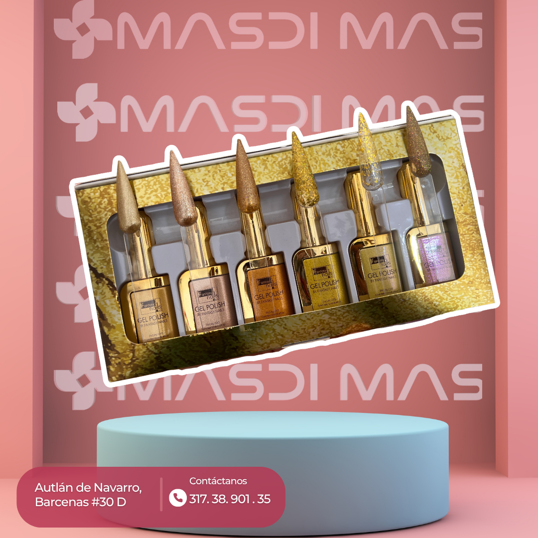 Gama Aurum 24 k, colección de 6 geles en tonos dorados