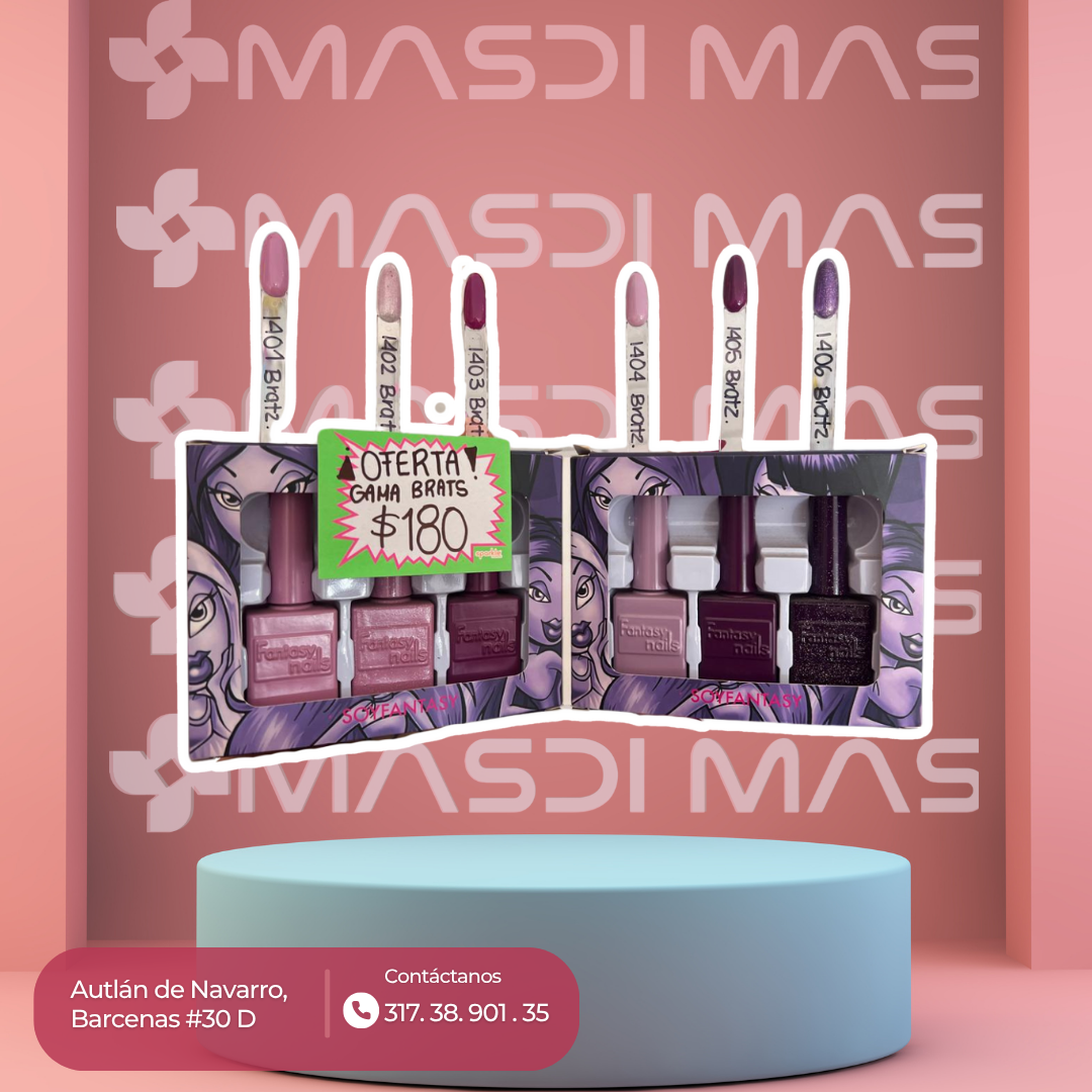 Gama Brats, colección de 6 geles en tonos morado, shimer y liso.