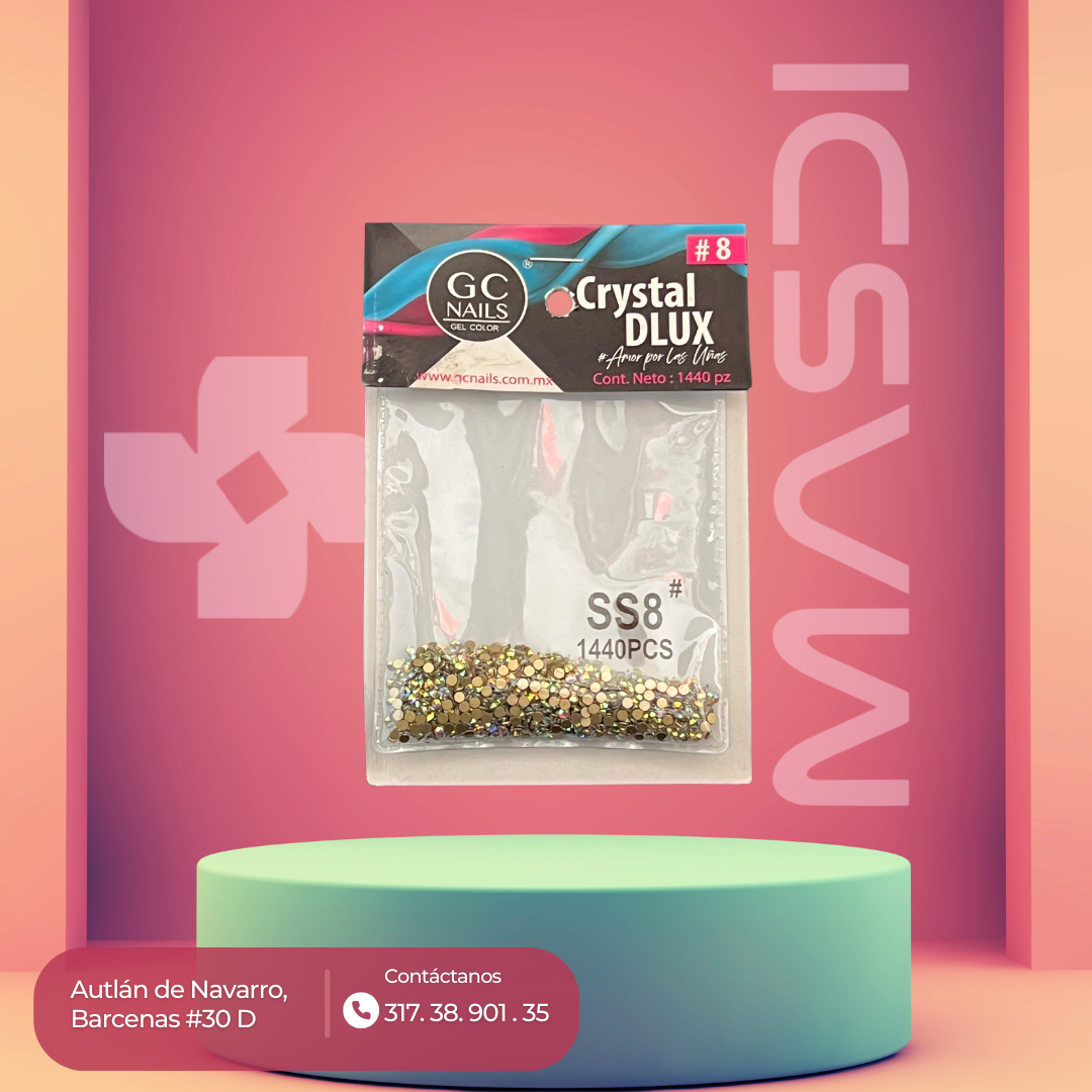 CRYSTAL DLUX #8 CONTIENE 1440 PZ CUENTAS DE CRISTAL PARA DECORACIÓN DE UÑAS