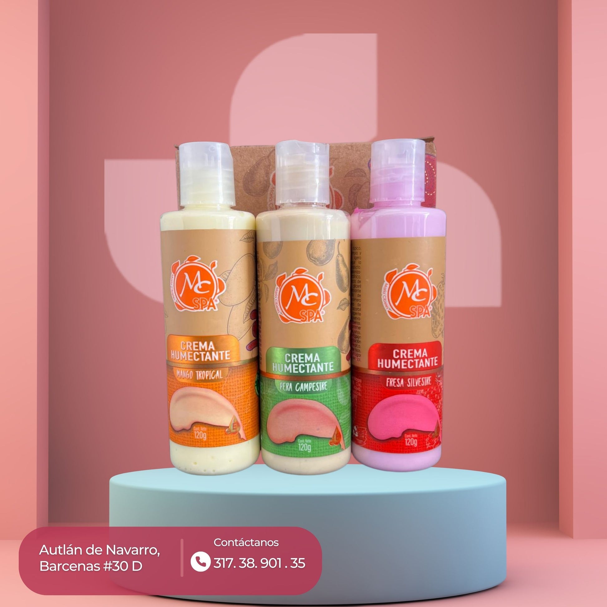 KIT CREMAS MC 120 G DISPONIBLE EN TRES AROMAS: PERA CAMPESTRE, FRESA SILVESTRE Y MANGO TROPICAL
